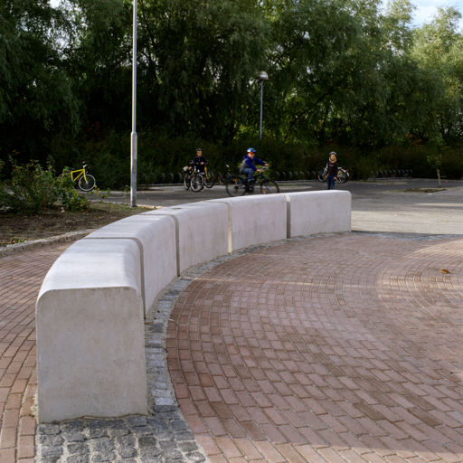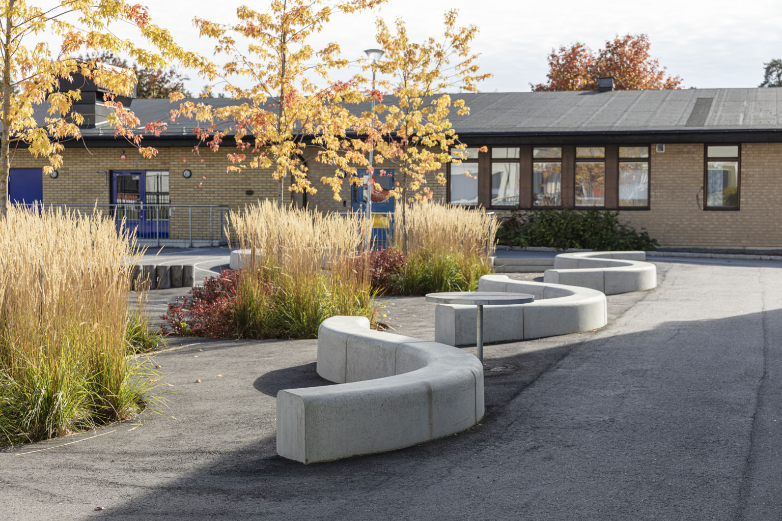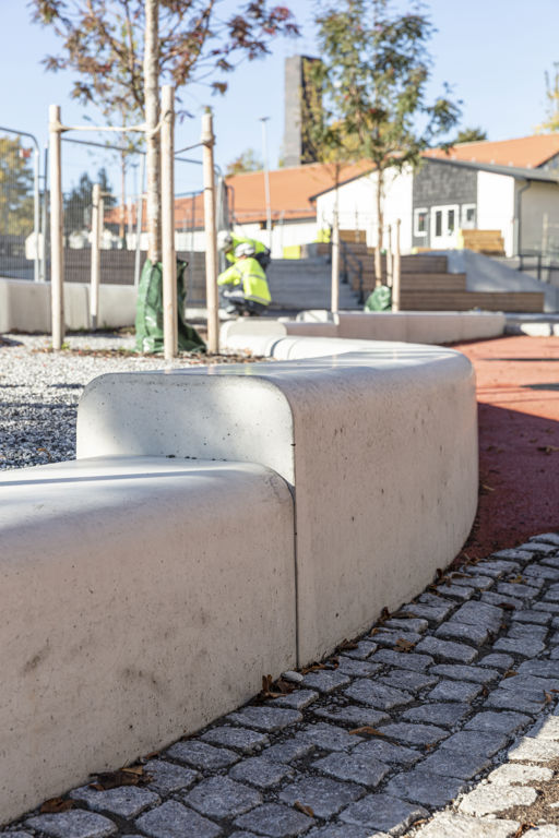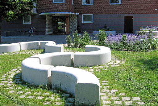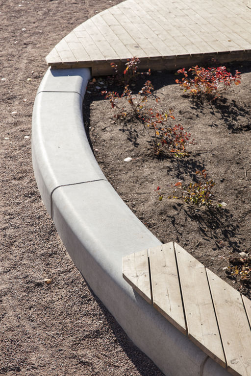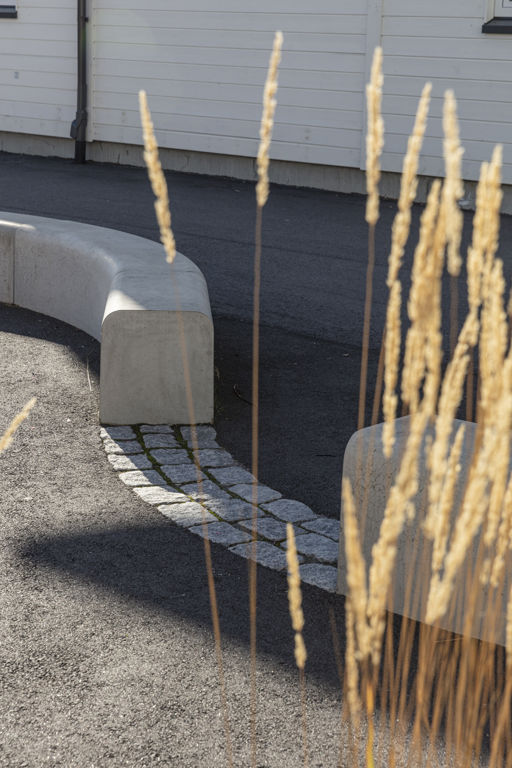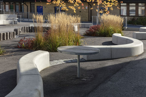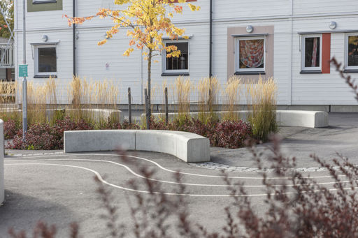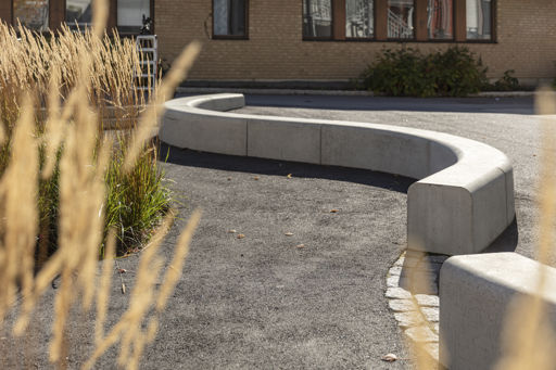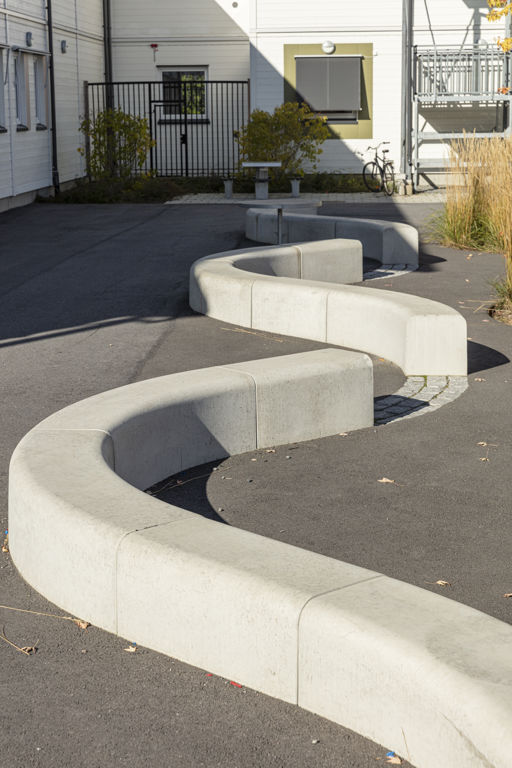 Sittmöbeln Outline har lekfulla linjer och stadiga former. Namnet passar väl in på detta välavvägda murelement som ofta ses användas på skolgårdar och i bostadsområden.