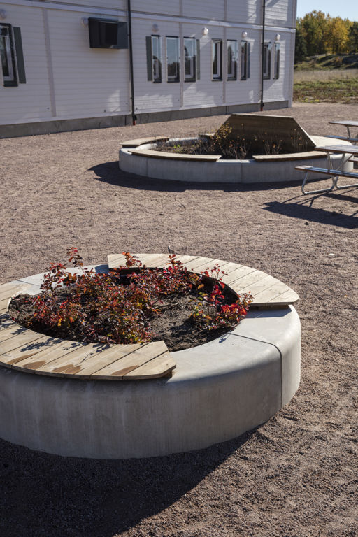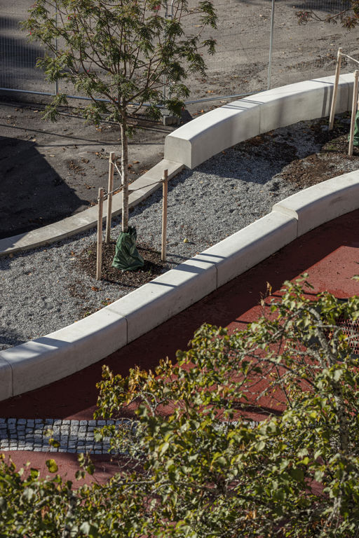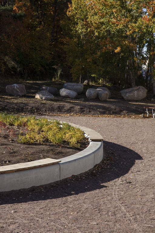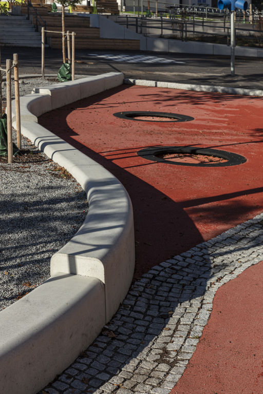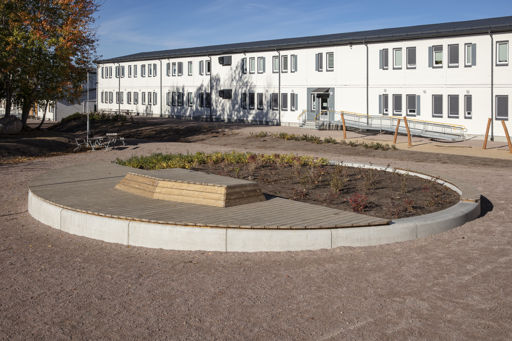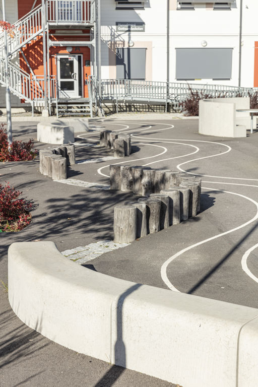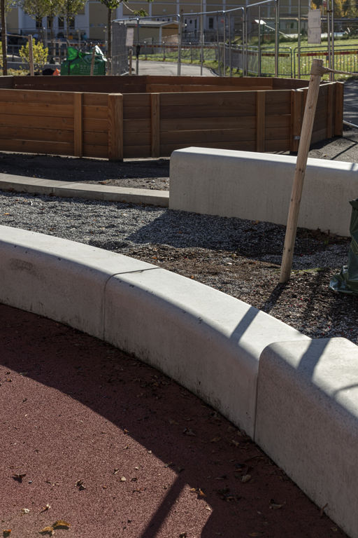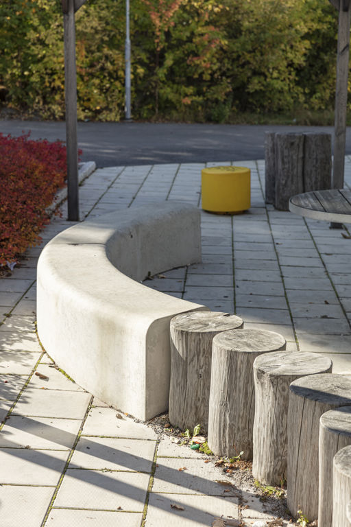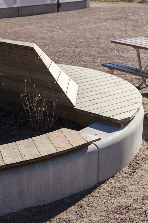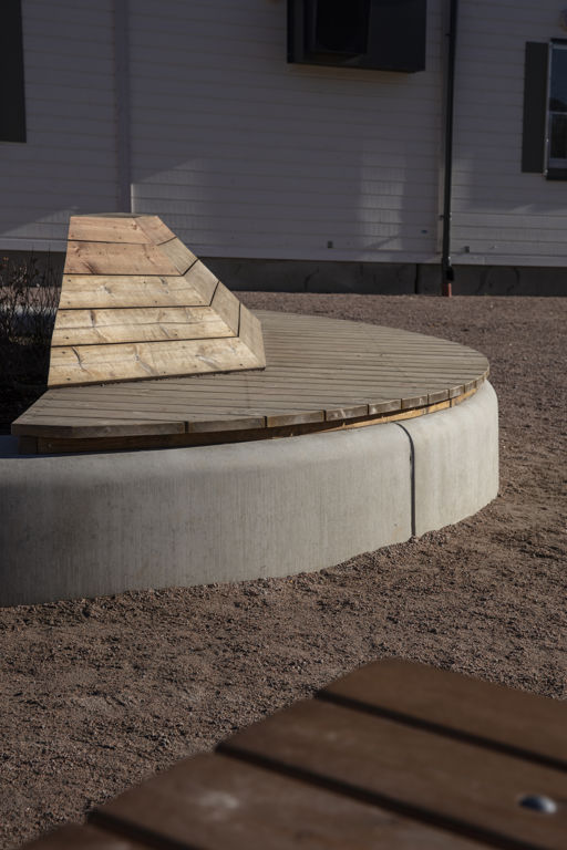 Sittmöbeln Outline har lekfulla linjer och stadiga former. Namnet passar väl in på detta välavvägda murelement som ofta ses användas på skolgårdar och i bostadsområden.