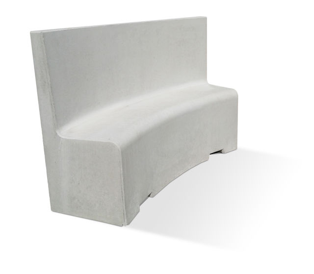 Snygg, designad möbel som går att använda ensam eller bygg ihop flera för att skapa en längre svängd betongsoffa.